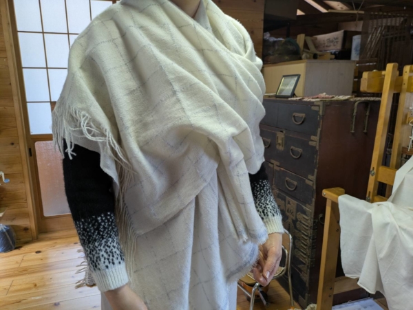 作者:平野さん寸法:77.5㎝ × 195㎝素材:ベビーカシミア、カシミアのファー杉綾織細く白いベビーカシミアの間に、カシミアのファーを一本格子になるように、たてと...