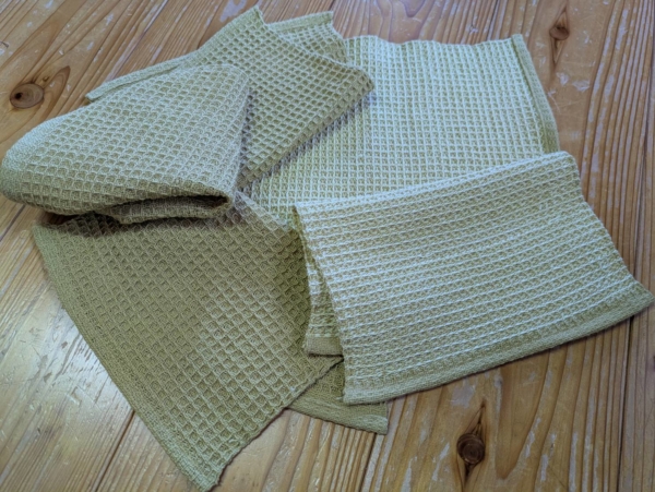 作者:ゆらりさん寸法:25cm × 28cm素材:コットンワッフル織コットンの細い糸で、手触りの良いハンカチができました。織り始めと終わりを、平織りにしてあります。仕... -