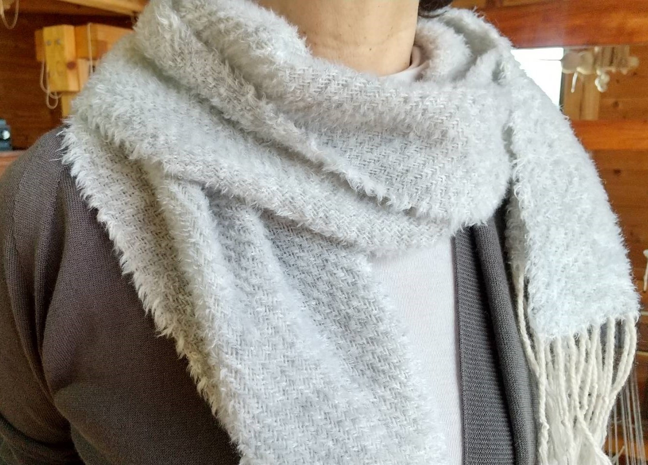 No.27 カシミアマフラーⅠ 2017 1/23 作品生徒さんの作品 作者:清水さん 寸法:30cm×177cm 素材:カシミア 両端に2cmの大きなフリンジを作り、房は結ばずに仕上げました。 巻き方でいろいろな表現ができるマフラーとなりました。 作品生徒さんの作品 カシミアマフラー よかったらシェアしてね! URL Copied! URL Copied! No.26 カシミアストール(黒) カメラベルト この記事を書いた人 kinone 関連記事 No.74 ポンチョ 2018.03.20 No.351 マフラー 2025.10.02 No.142 サンプラーバッグ 2019.11.13 No.93 子供用マフラー 2018.10.03 No.90 シルクマフラー 2018.09.08 NO.299 マフラー 2024.04.30 No.260 ランチョンマット 2023.08.05 No.35 マルチカバー 2017.03.19