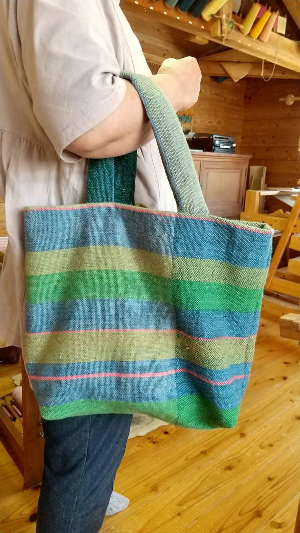 初めてのレノ織を楽しみながら織られました。