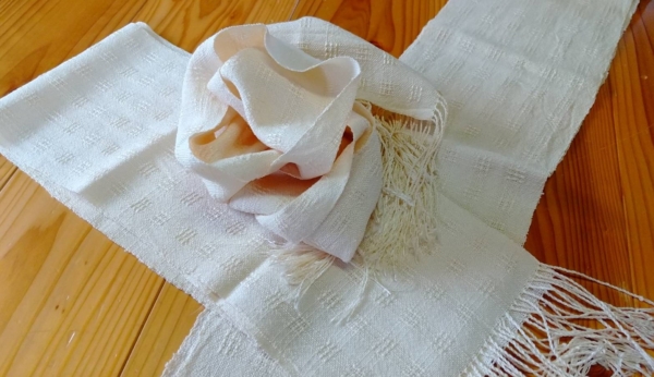 No.199 シルクマフラー 2021 7/17 生徒さんの作品 作者:ゆらりさん 寸法:16cm × 148㎝ 素材:シルク キャンパス織り。平織の部分は、ジョーゼットの様なしぼができていて、仕上がりの風合いがとてもいいです。 同じものをプレゼント用に3枚織られました。 生徒さんの作品 よかったらシェアしてね! URL Copied! URL Copied! 隣のガマさん No.200 オーガニックコットン 小マフラー この記事を書いた人 kinone 関連記事 No.99 カシミアマフラー 2018.11.28 No.248 マフラー 2023.05.22 No.105 フェルトヒモマット 2019.02.13 No.138 マフラー 2019.09.26 No.163 暖簾 2020.03.08 No.174 チューブ織マフラーⅠ 2020.06.14 No.297 マフラー 2024.03.28 No.107 カシミアストール 2019.04.27