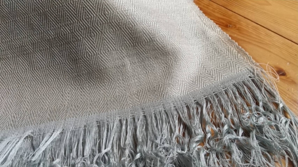 作者: 三山さん寸法:36.5㎝ × 187㎝素材:シルク以前織られた帯用の布を呉服屋さんへ仕立ての相談に行かれたところ、裏地用にもう1ⅿ位あればとのことで2ⅿ程織られ... -