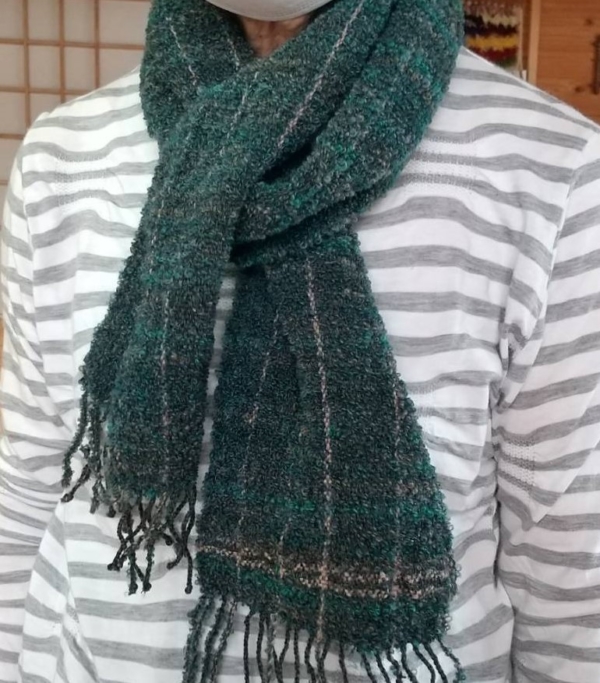 No.220 ループ糸マフラー 2022 6/01 生徒さんの作品 作者:ばあちさん 寸法:15㎝ × 160㎝ 15㎝ × 152cm 素材:ループ糸 平織で2本製織。 仕上げでループが表面に出てきて厚みが出ました。 織り幅が狭いので二つに折らなくても丁度良いくらいの幅になり、使いやすそうです。 生徒さんの作品 よかったらシェアしてね! URL Copied! URL Copied! 教室風景 No.221 オーガニックコットンマフラー この記事を書いた人 kinone 関連記事 No.7 シルクマフラー 2016.08.13 No.100 ノッティングマット 2018.12.05 No.263 マフラー 2023.08.05 No.235 のれん 2022.12.11 No.355 ショール 2025.11.17 NO.300 マフラー 2024.04.30 No.343 マフラー 2025.06.03 NO.251 マフラー 2023.05.22