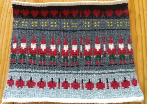 サンタの背景をグレーや黒で織ってあるので、シックで大人っぽく仕上がっています。耳や上下の糸始末もきれいです。