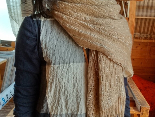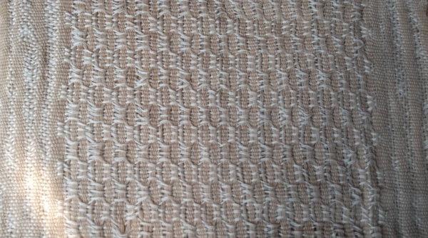 引き揃えの糸を使用して製織。画像の様に表と裏の表情が異なる様になる織り方です。