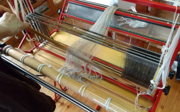 その中を工房の織姫の皆さんは、丁寧な機織りに励まれました。