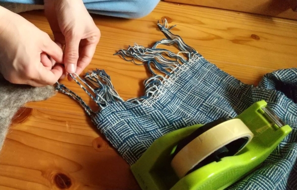 シルクの網代織が終わり、房作りのanさん