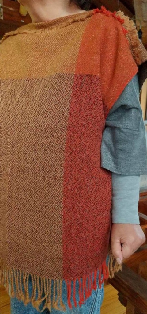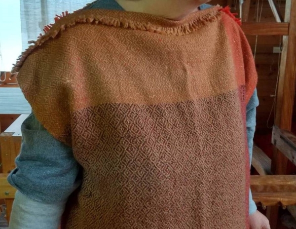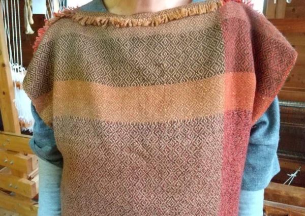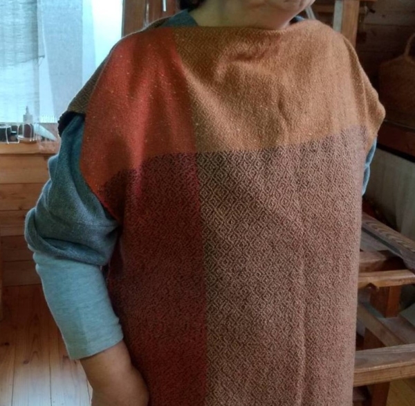 No.296 ポンチョ 2024 3/28 生徒さんの作品 作者:Uさん 寸法: 身巾61cm 着丈65cm 素材:ウール 杉綾織で生地を織り、リバーシブルで前後どちらでも着用できるように仕立ててあります。 織り柄がきれいにはっきり見えて、温かい作品になりました。 生徒さんの作品 よかったらシェアしてね! URL Copied! URL Copied! NO.295 マフラー No.297 マフラー この記事を書いた人 kinone 関連記事 No.330 テーブルセンター 2025.02.25 No.82 モヘアストール 2018.06.07 No.172 モヘアストール 2020.06.14 No.33 チューブ織マフラー 2017.02.19 No.181 ネクタイ 2020.10.03 No.282 マフラー 2024.01.18 No.122 紗のマフラー 2019.06.09 No.83 カシミアストール 2018.06.07