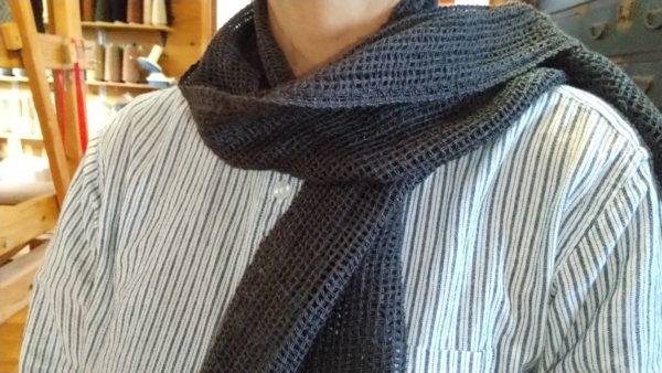 No.317 マフラー 2024 11/18 生徒さんの作品 作者:ゆらりさん 寸法:29cm × 106cm 素材:シルク 模紗織。 細く甘撚りのシルクの糸で織られました。 単糸だったので、機がけもやりにくく時間が掛かりましたが、根気よく頑張られました。 とても軽くて肌触りも良く、しなやかな出来上がりです。 生徒さんの作品 よかったらシェアしてね! URL Copied! URL Copied! たかひろ散歩㉛ 晩秋 No.318 テーブルセンター この記事を書いた人 kinone 関連記事 No.54 オーガニックコットンのマフラー 2017.08.16 No.220 ループ糸マフラー 2022.06.01 No.258 ストール 2023.06.25 No.140 カシミアマフラー 2019.10.31 No.72 アンゴラマフラーとスカート 2018.03.15 No.267 マフラー 2023.08.26 No.146 ウールマフラー 2019.11.14 No.8 手紡ぎマフラー 2016.10.08