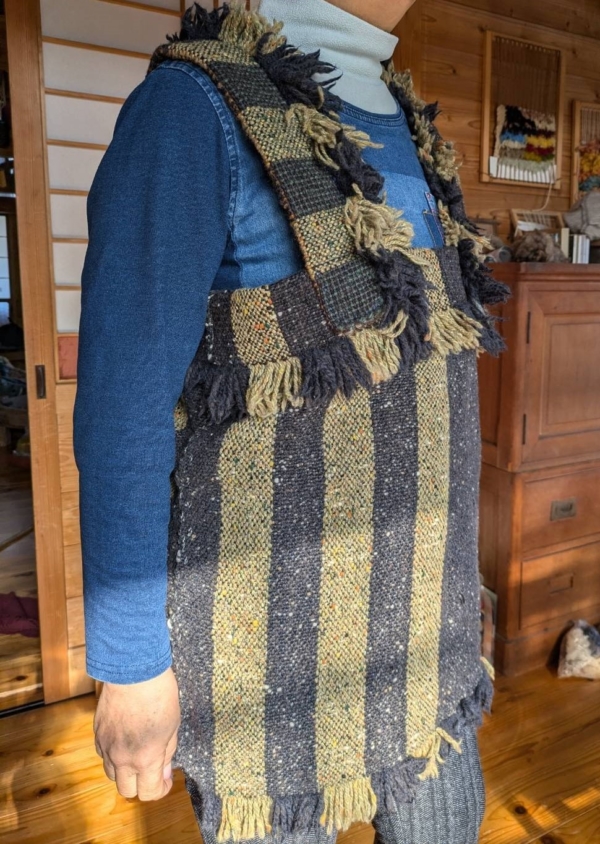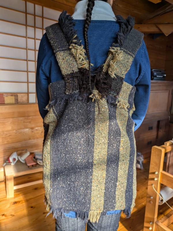 No.328 ポンチョ 2025 1/27 生徒さんの作品 作者:こうさん 素材:ウール 平織。 出来上がりをイメージして布を織られました。 フリンジの位置も素敵に配置して、ご自分でしっかりと仕立てられました。 とてもお似合いでした。 生徒さんの作品 よかったらシェアしてね! URL Copied! URL Copied! No.327 マフラー No.329 マフラー この記事を書いた人 kinone 関連記事 No.46 布フェルトのロングベスト 2017.06.12 No.306 ネックウォーマー 2024.07.07 No.349 シルクストール 2025.09.14 No.114 カシミアストール 2019.05.12 No.260 ランチョンマット 2023.08.05 No.7 シルクマフラー 2016.08.13 No.289 マフラー 2024.02.29 No.271 シルクマフラー 2023.09.02