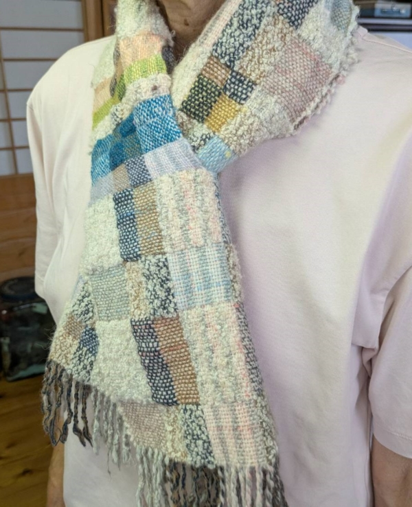 手持ちの残りの糸や、様々な色のウールの糸を選びながら楽しく織られました。