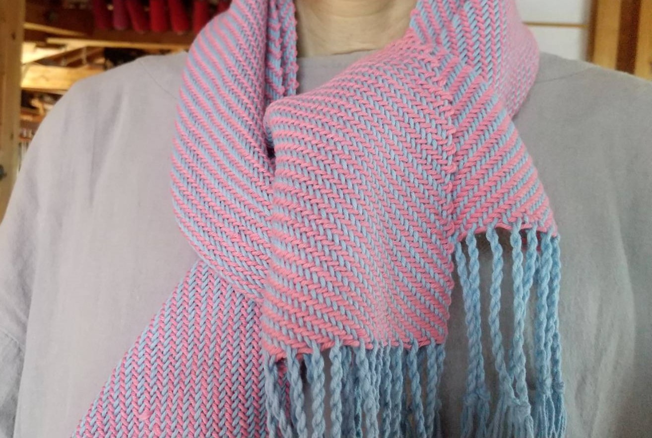 No.354 マフラー 2025 11/17 生徒さんの作品 作者:いのうえさん 寸法:20㎝ × 84.5cm 素材:ウール ラムウール 8枚綜絖のチューブ織り。 色遣いや素材選びを楽しみつつ、チューブ織の仕組みを考えながらの機織りでした。 生徒さんの作品 よかったらシェアしてね! URL Copied! URL Copied! No.353 ポンチョストール No.355 ショール この記事を書いた人 kinone 関連記事 No.148 コースター 2019.12.08 No.2 二重織りマフラー 2016.08.13 No.234 マット 2022.12.11 No.171 マフラー 2020.06.14 No.5 ノッティングマット 2016.08.13 No.12 ストール 2016.10.15 No.184 マフラー 2020.11.07 No.73 斜紋織マフラー 2018.03.20