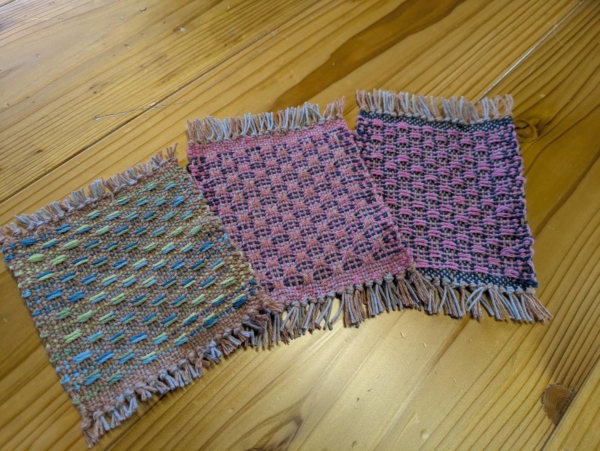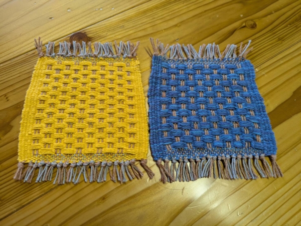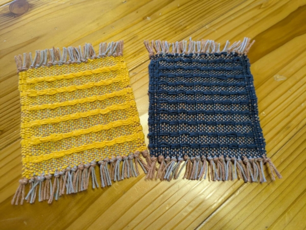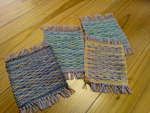 タイアップや、織り方を変えることで、変化に富んだコースターになりました。