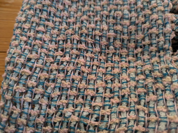 よこ糸も同じようにして織りながら、等間隔に間を開けてあります。