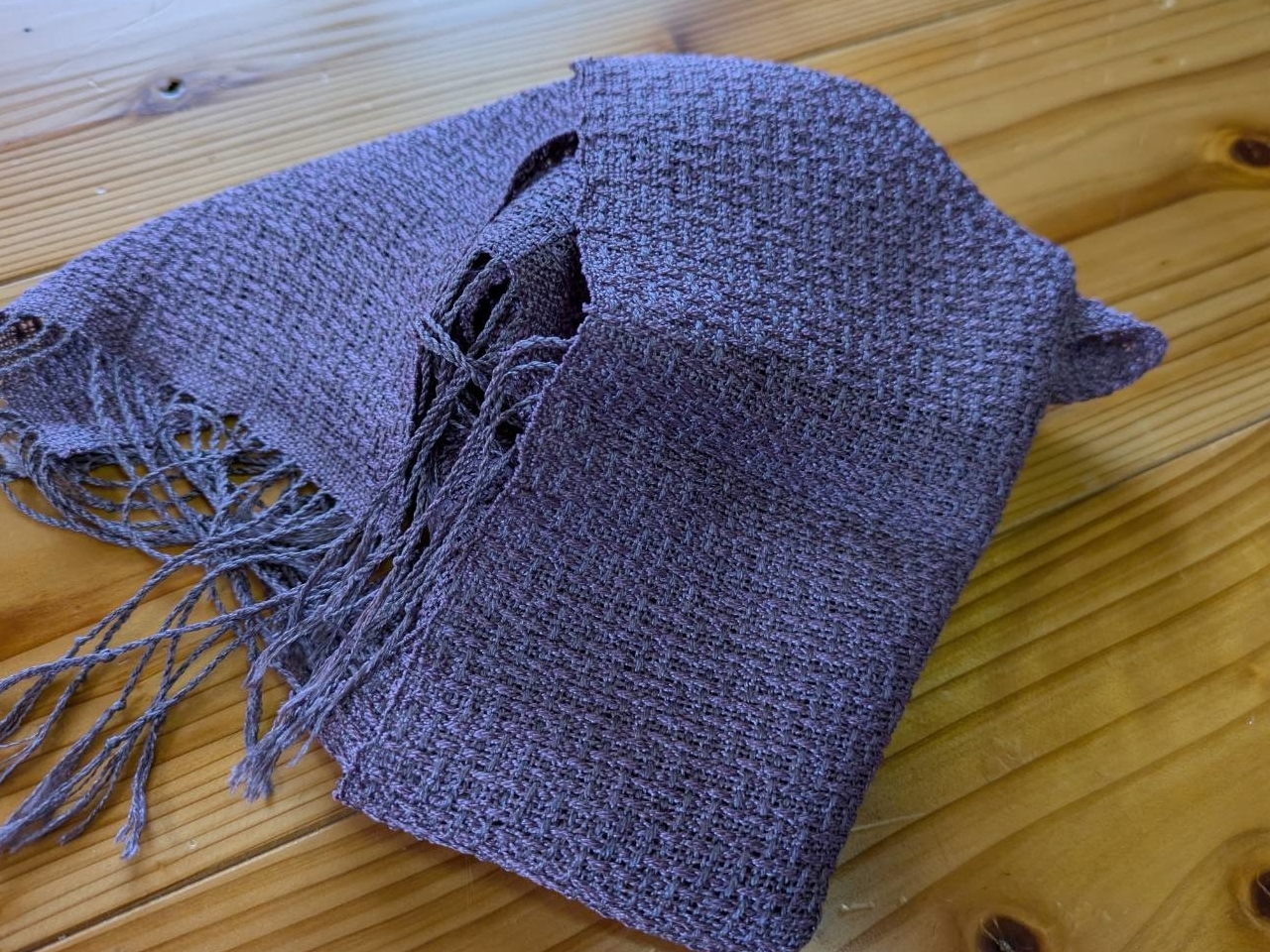 たて糸は同じですが、よこ糸を細いシルク糸の二本取りや違う糸の二本取り等、それぞれに変えてあります。